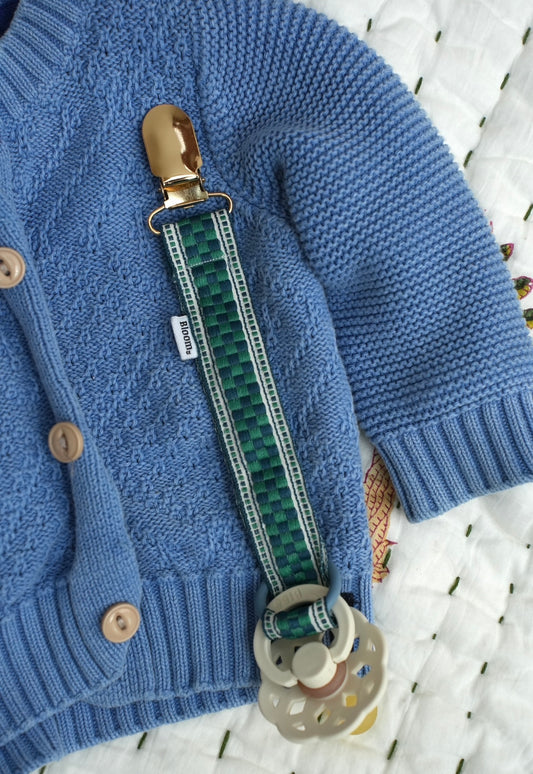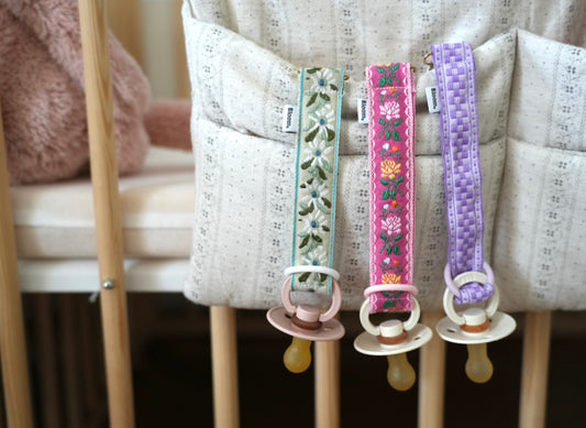 Dit handgemaakte speenkoord van geweven katoen is beschikbaar in verschillende prints, perfect om te matchen met de outfit van je kleintje. Een praktisch, schattig en veilig accessoire voor dagelijks gebruik.