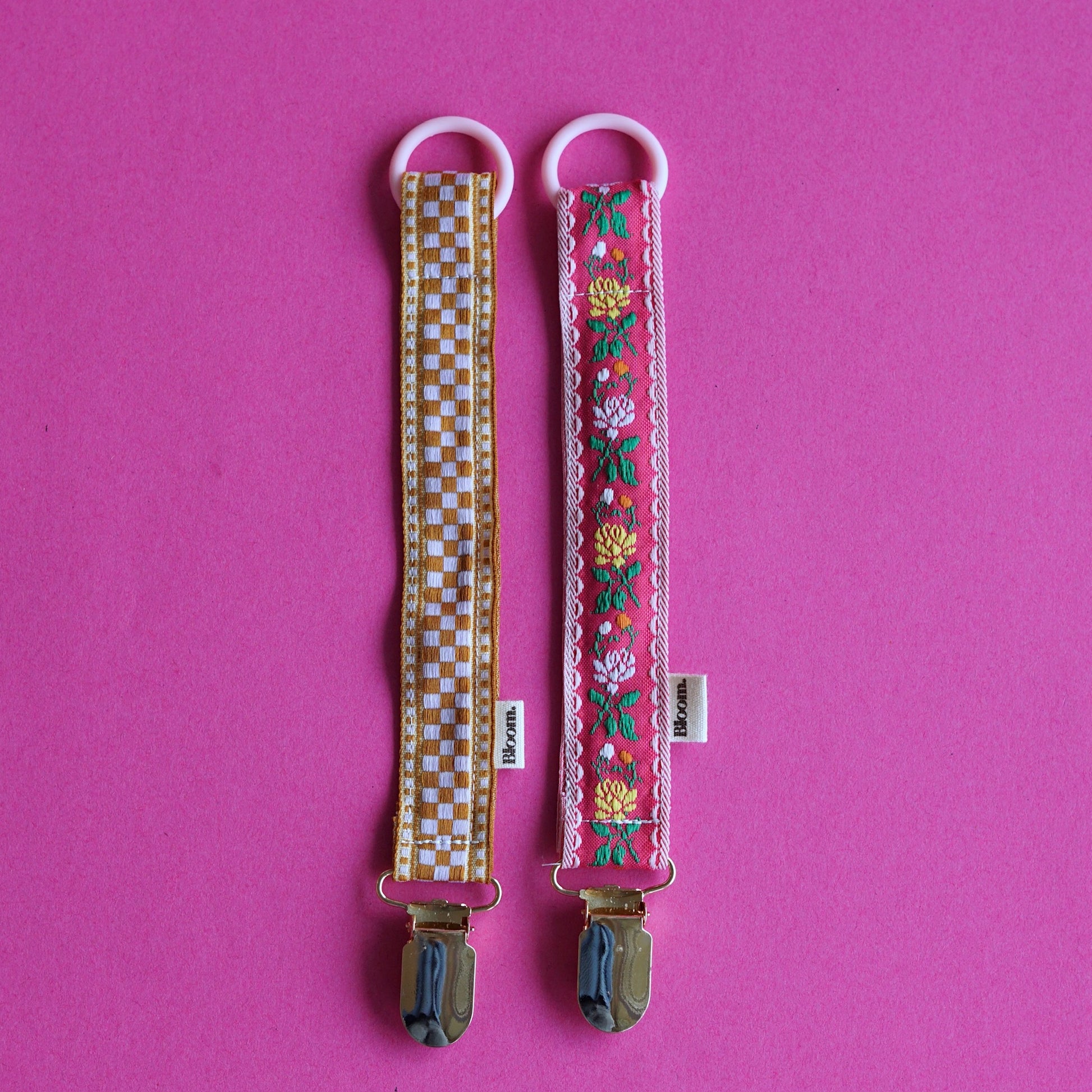 Dit handgemaakte speenkoord van geweven katoen is beschikbaar in verschillende prints, perfect om te matchen met de outfit van je kleintje. Een praktisch, schattig en veilig accessoire voor dagelijks gebruik.